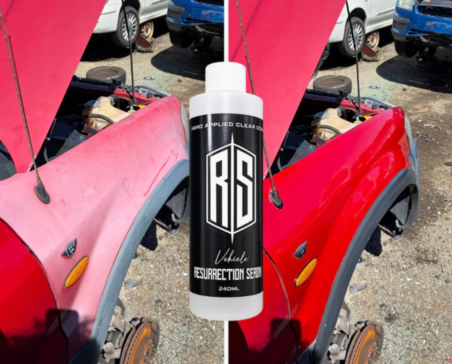 Resurrection Serum is an advanced vehicle restoration formula designed to revive faded, oxidised and sun damaged clear coat without the need for sanding, polishing machines or expensive paint correction. Over time, UV exposure and environmental contaminants strip your vehicle of its depth and gloss, leaving paint looking dull, chalky and aged. Resurrection Serum works by penetrating the porous, dried clear coat layer and reconditioning it from within, restoring colour richness and a deep, wet look shine.